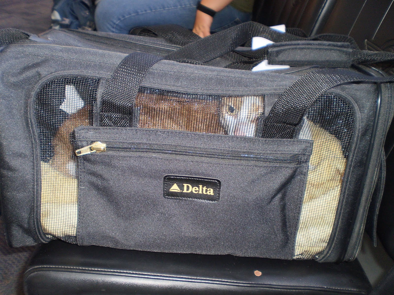 I got to the Salt Lake airport with plenty of time. Paid the $75 for pet transport, got him tagged, and then turned my bags over to security. I checked two bags. One was my stuff; the other was a hard case pet taxi, filled with Dorian’s food, toys, water bowl, and litter scoop & lint rollers. With wheels on the suitcase and cat stuff not weighing as much as the cat, I found getting to security a bit of a challenge. I ended up making a request at security; Dorian was skittish and I didn’t want to take him out of the bag. I asked if it could be hand inspected they said no but opened a gate and took the cat carrier. I went through security and followed two security agents to a small room where I held Dorian and an agent patted him down (she really likes cats.) while the other one ran the carrier through the x-ray machine. They declared both bomb free. When the guy brought in the bag Dorian practically jumped back into it and squatted down to make it easy to zip shut. It was a far cry from the wrestling match Amy and I did to get him zipped into it for the trip to the airport.